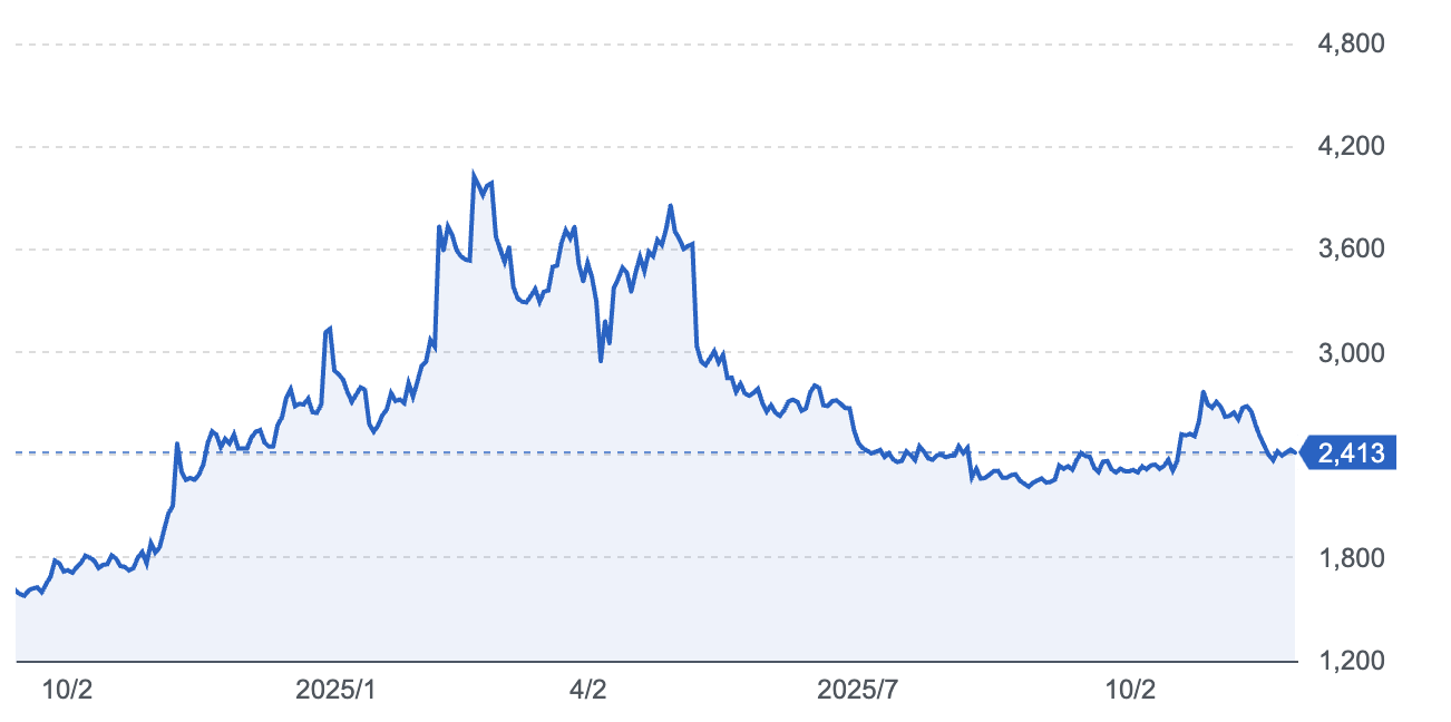2025年11月で最も上がったのが6〜7日ごろですが、前日11月5日に第2四半期決算を発表するとともに、通期業績予想の下方修正を発表しました。